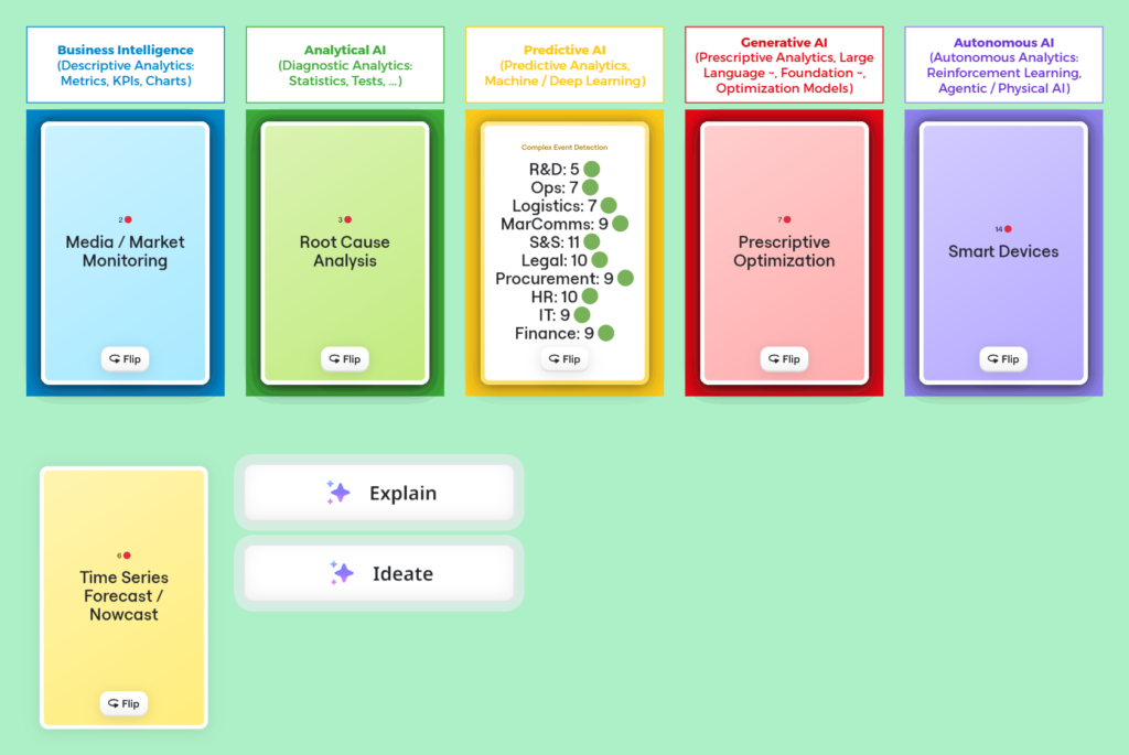 Our Miroverse template family has grown, and our popular game “Playing AI to Win the Business” has a little sister: “Playing AI to Win the Marketing“! We developed a special version of our collaborative strategy game for the AI in Marketing conference. The card game allows marketers, AI experts, and data scientists to playfully explore AI use cases for marketing and learn how a well-thought-out AI strategy pays off in terms of AI ROI.